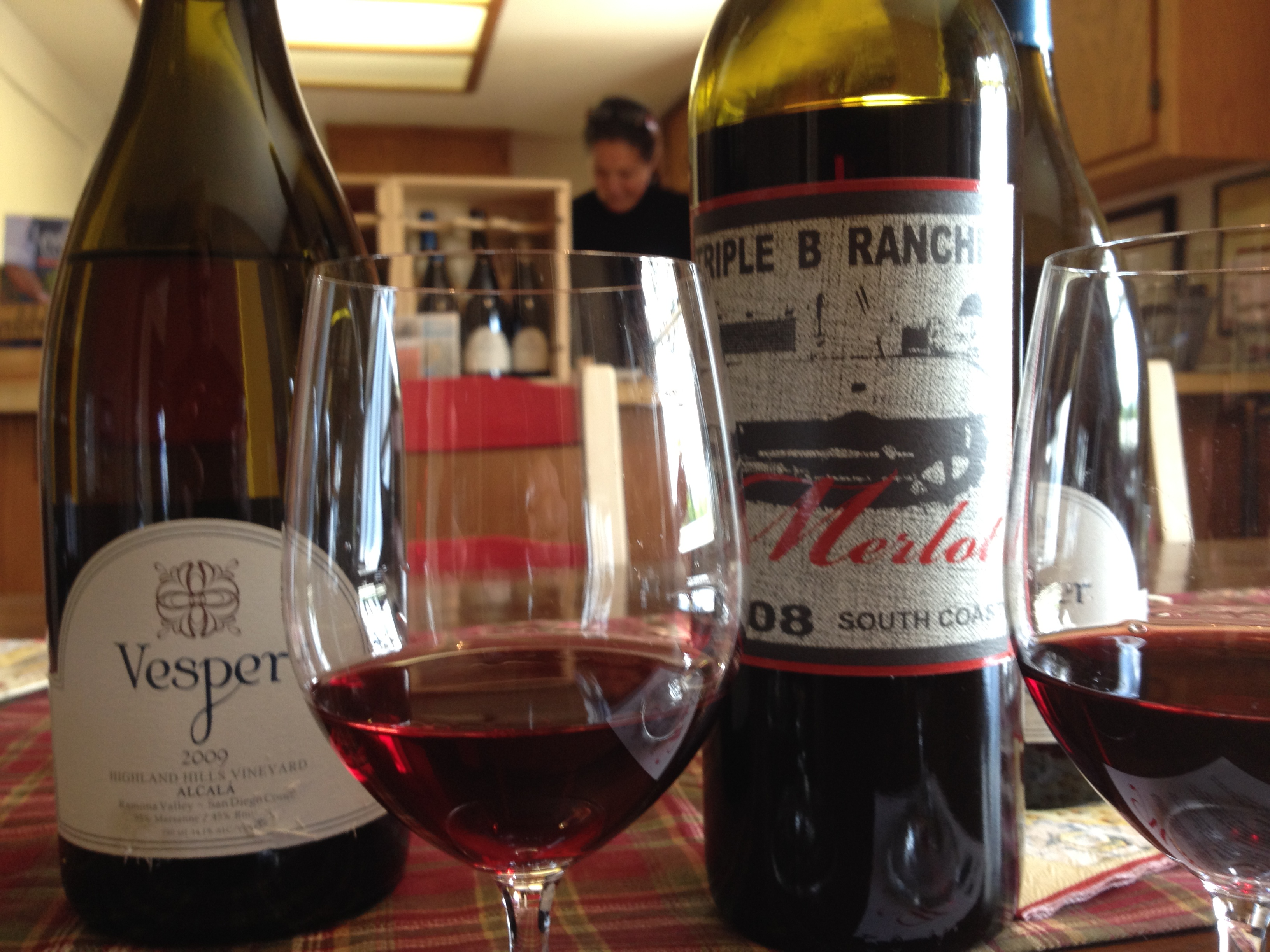 Triple B Ranches is a small family-owned winery tucked away amidst the fields of Valley Center, near Escondido. Owners Gary and Sheila Broomell just entered the local winery business this past November, with three generations of family all involved in operation. They are dedicated to local, sustainable agriculture and all of the grapes for their Triple B Ranches label are estate-grown fruit. Their grandson, Chris Broomell, is the winemaker, started out working with Jaffurs Wine Cellars in Santa Barbara and doing a harvest stint in South Australia. In addition to Triple B Ranches, Chris puts out his own Vesper label, which are all sourced from single vineyards in various microclimates around San Diego County, including the McCormick Ranch near Mt. Palomar, and the Highland Hills Vineyard in the Ramona Valley AVA.